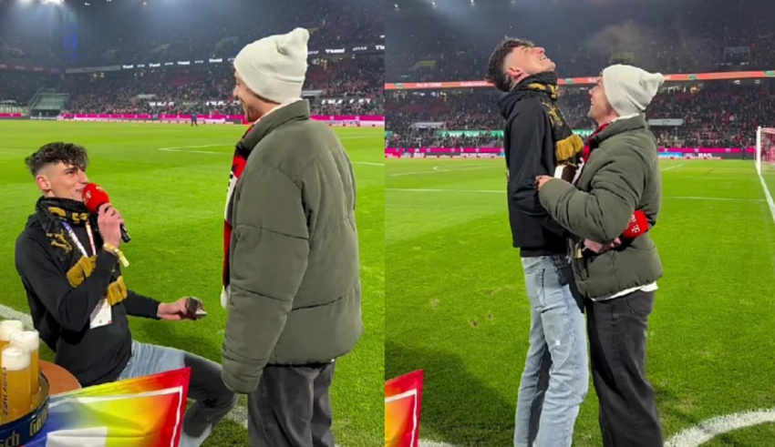Pascal Kaiser, som åbenlyst har identificeret sig som biseksuel, gik ned på knæ og friede til sin kæreste Moritz foran hele stadion. Timingen var perfekt, og publikum reagerede med enorme klapsalver og jubelbrøl.
