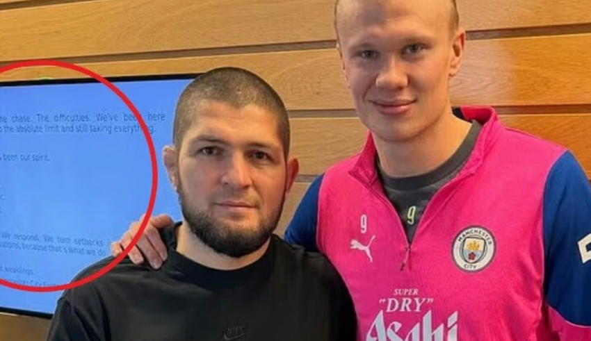 Hele miseren blev ekstra bemærkelsesværdig, da Erling Haaland delte et billede med UFC-legenden Khabib Nurmagomedov på de sociale medier. Men i stedet for at fokusere på de kendte ansigter, blev fansenes opmærksomhed fanget af den medrivende besked i baggrunden.