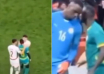 Til hjemmefansenes skuffelse reddede Jordan Pickford straffesparket. I det efterfølgende spil scorede nordmanden et mål, som dog blev annulleret for offside, så stillingen forblev 1:1. Den engelske målmand gjorde ansigter for at distrahere sin modstander før Haalands straffespark. Det ser ud til, at det lykkedes ham, for han reddede straffesparket fra den norske angriber, og dermed reddede han sit hold.
